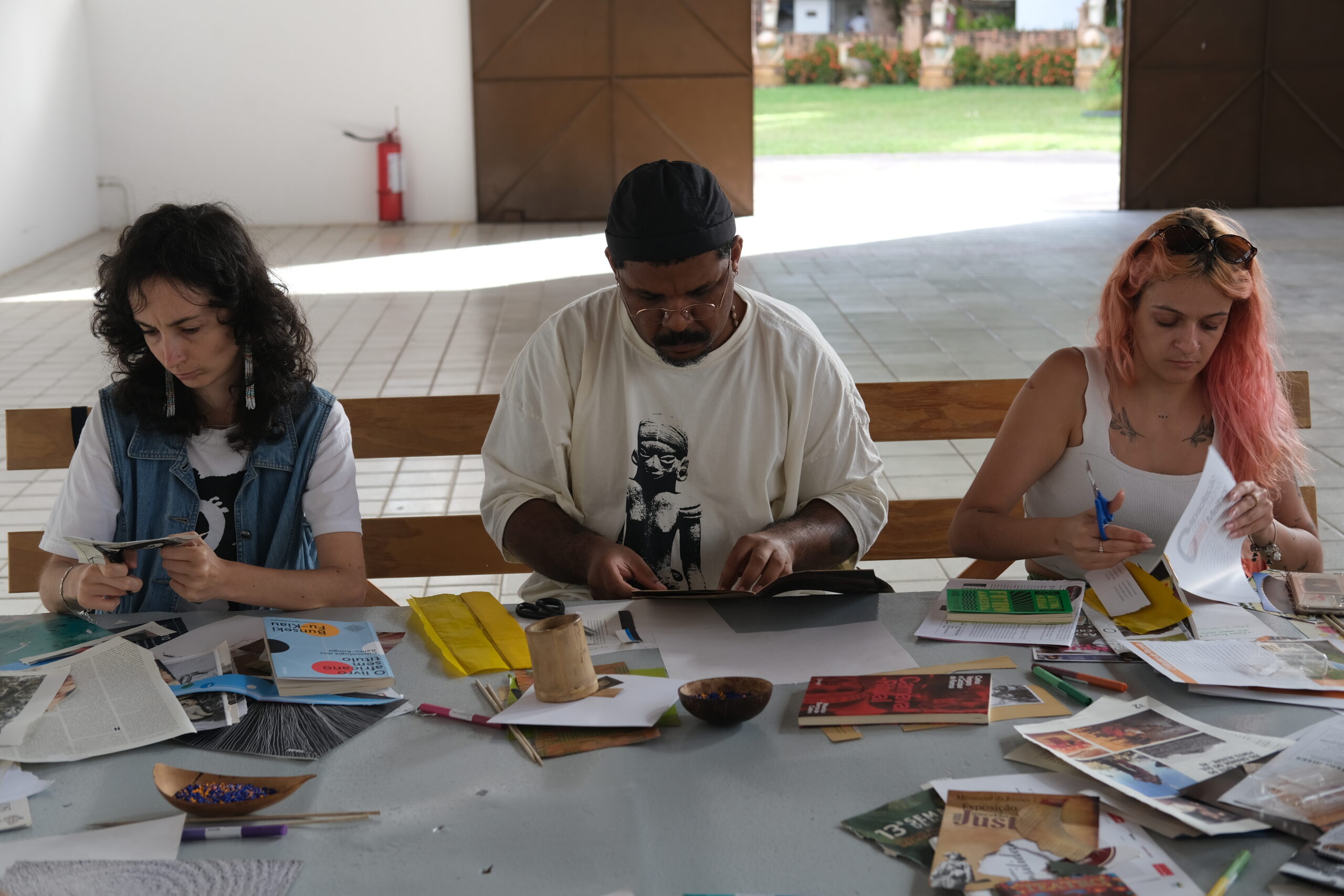 L’atelier Kaz-son, mené par les artistes du collectif masonn, a pris la forme d’un atelier pluridisciplinaire, articulant collage visuel et pratique sonore. Organisé à l’Oficina Francisco Brennand à Recife, l’atelier a invité les participant·es à explorer les relations entre corps, habitat et mémoire à travers des temps de création distincts réunis dans la réalisation d’une œuvre collective vidéo mêlant collage et son.